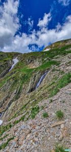 După ce-am traversat, ne-am tras mai hacana și-am făcut o mică pauză de masă. Traverseul ce-ncepe acolo e un foarte bun punct de belvedere spre salba de cascade și spre emisarii ce brăzdează stâncăriile și jepăraia versantului drept geografic. Merită să te oprești mai des de-aici în jos, așa cum merită să-ți vezi de drum (iar dacă nu te-ai mai opri atunci degeaba ai pleca la drum).