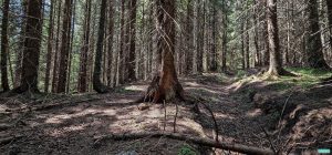 Din fericire, nu încotro aveam noi treabă și vreau să vă spui că mai mare noroc nu crez că s-ar fi putut să avem. Nu doar că am găsit poteca într-o continuare perfect naturală a celei ce ne-a scos în plai, ci am aflat-o într-o perfectă stare de conservare, în mare și datorită adăpostului oferit de pădure.
