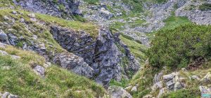 Sus, la intrare pe Custura Cârjei ne-am oprit un pic să ne tragem răsuflarea și chiar mă-ntinsei să iau pulsul ierbii, chit că multă vreme nu mai era, fiind strânși cu ușa de-apropierea serii. Să facem și custura nu mai era timp, deci am luat decizia evidentă de-a coborî pe meleagurile cunoscute ale căldărilor Sliveiului și Cârjei.