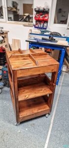 În termeni de funcționalitate, trebuia să aibă roți cu frână ce se pot roti pe toată plaja de 360 de grade (astfel încât să pot învârti la rândul meu masa pe loc – și la stânga, și la dreapta, uite-așa se-nvârte masa) și o împărțire pe trei niveluri: